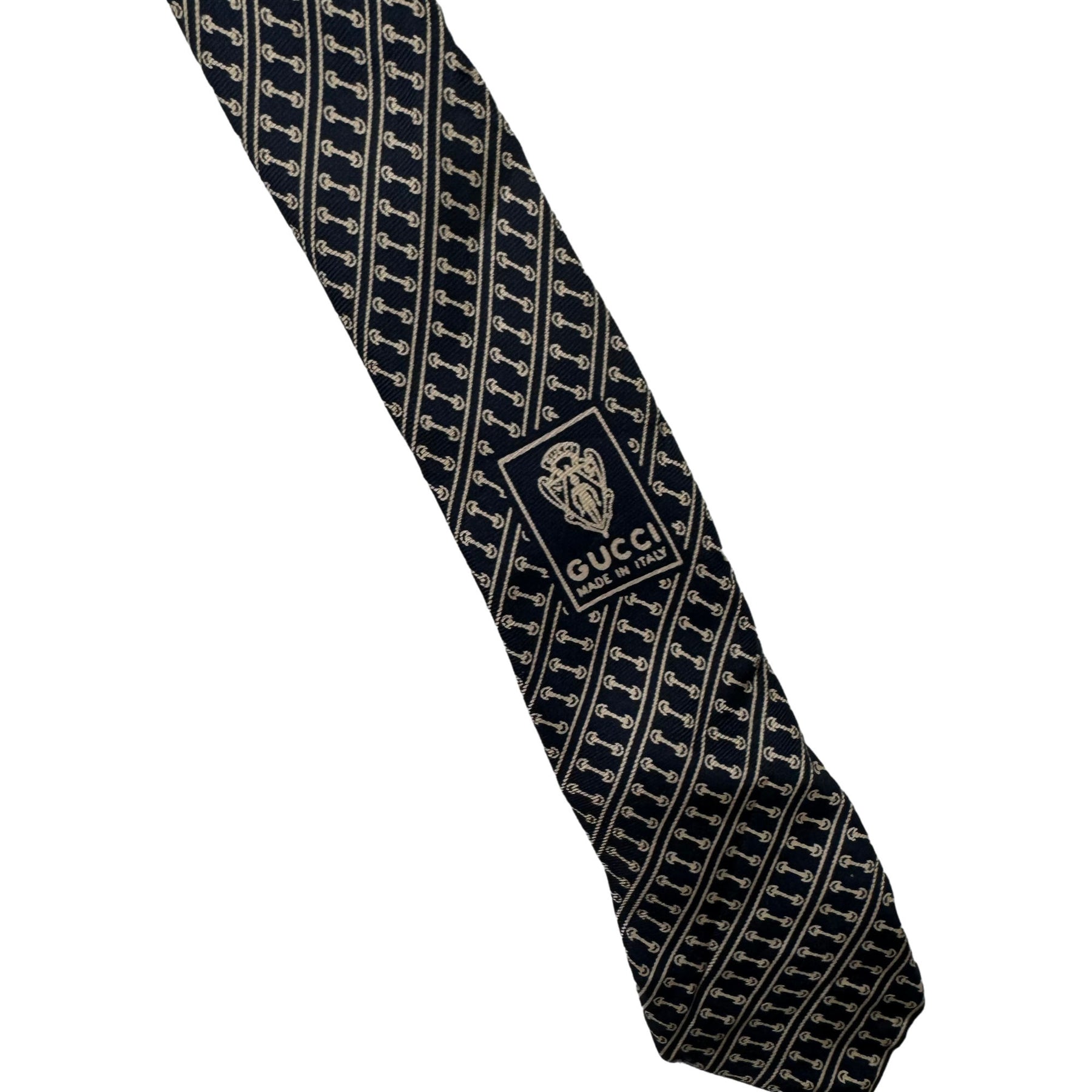 Gucci Patterned Silk Tie Navy White